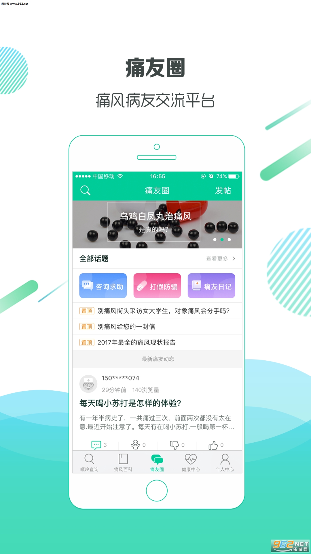 平台设有痛友圈,汇聚了来自全国各地的痛友们。在这里,大家可以一起交流分享相关知识,互相提醒要“管住嘴、迈开腿”,在彼此的鼓励中积极面对,即便受痛风困扰,也要努力享受生活的美好。
