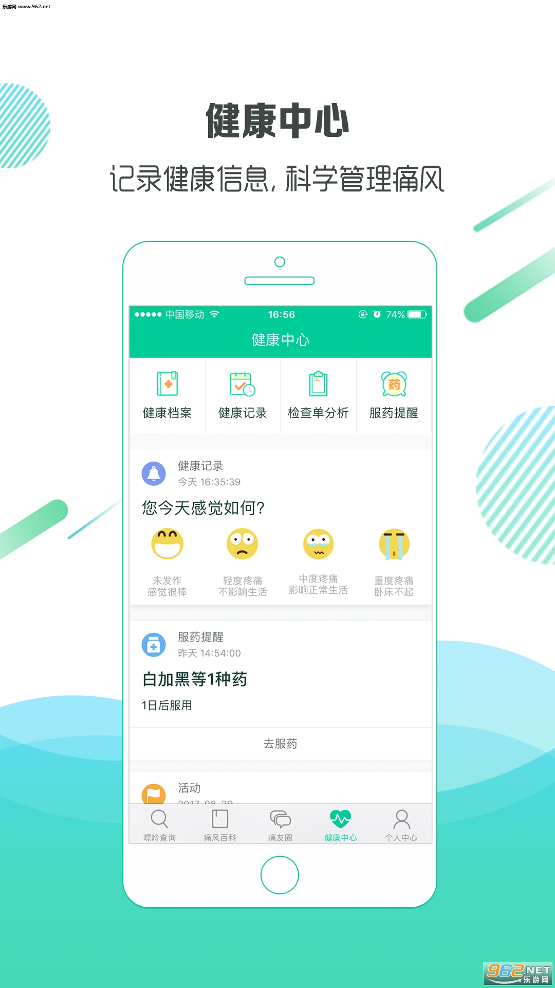 痛风发作时的应急处理知识,同时也能及时了解痛风领域最新的研究动态与进展。个人中心:支持个人收藏痛风相关知识,同时可追踪自身健康状况,以便及时了解并采取预防措施。