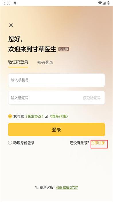 若用户还未拥有账号,可点击屏幕右下角的【立即注册】按钮,完成新账号的注册操作。