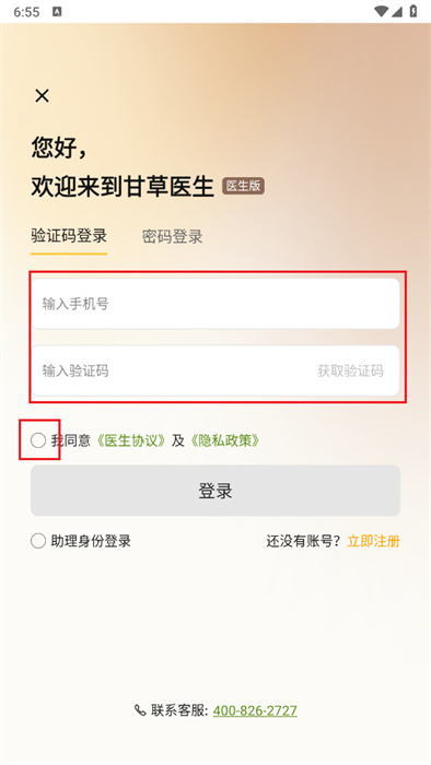 你可以先点击屏幕里红色框内的小圆圈按钮,再在上方的两个框中填写手机号和验证码。
