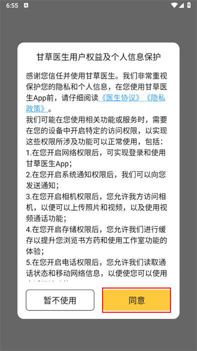 首先要同意用户隐私协议,点击屏幕右下角的【同意】按钮就可以了。