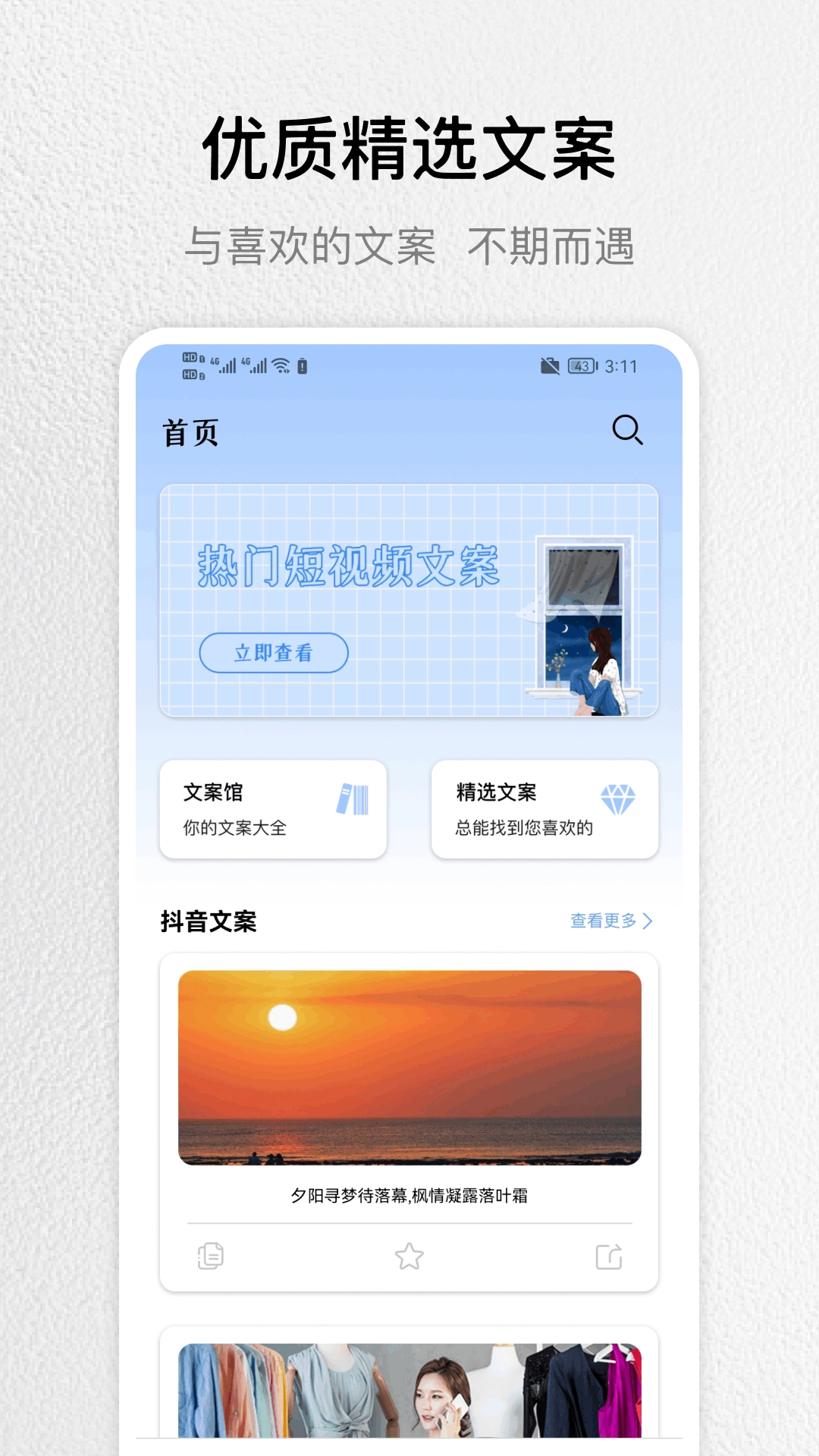 2.会定期补充短视频热门文案、新文学摘录以及节日专属素材包,紧跟热点潮流,保持内容的新鲜度。