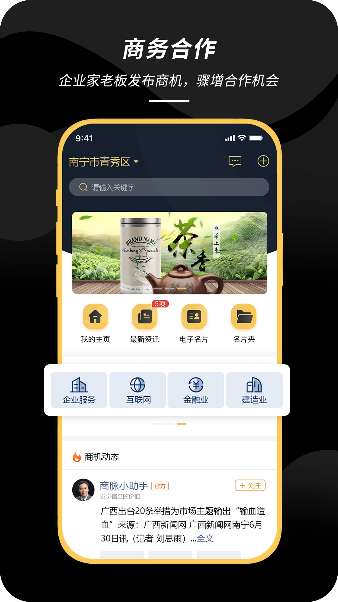 2、应用内提供丰富的商务资讯,包括市场动态、行业分析等内容,帮助用户把握商机,提升决策效率。