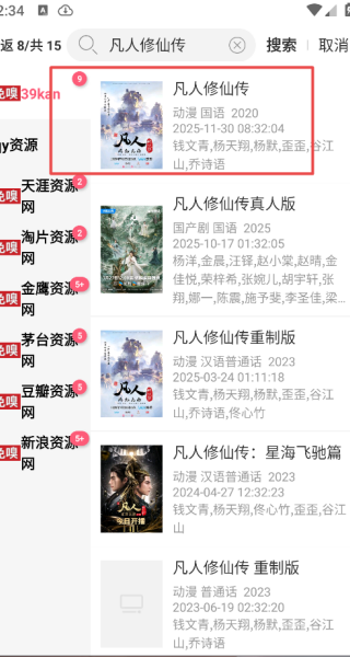 2、在搜索栏,输入关键词,能够搜索你要看的影视剧,还可以切换视频源;