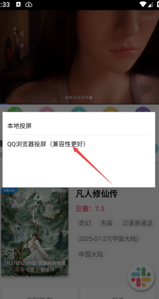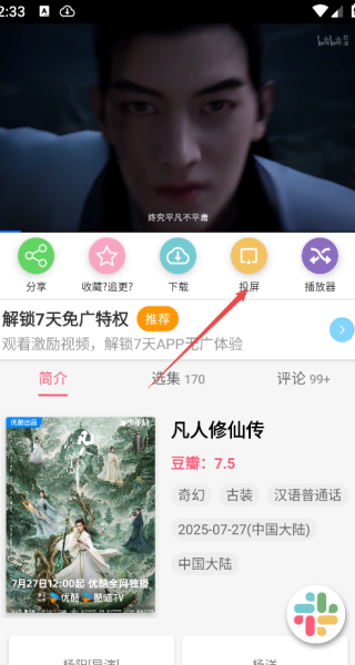 3、点击封面,进入播放界面,接着我们需要点击下方的投屏按钮;