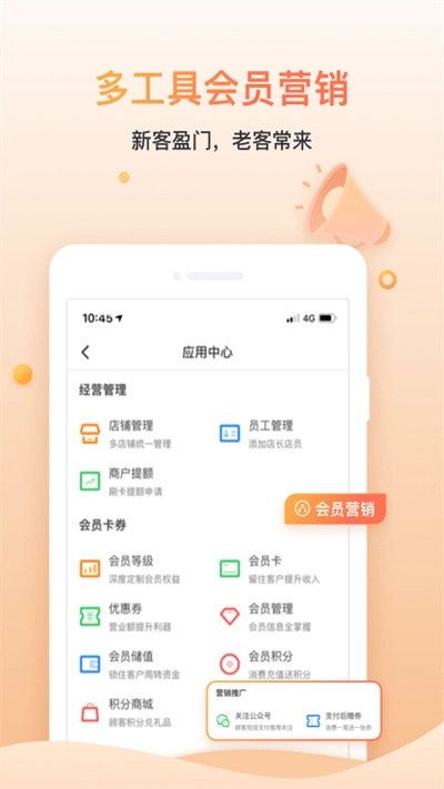 2、基于微信生态,提供原生会员卡,会员权益,给消费者极致的用户体验微信付款码即可享受会员权益。