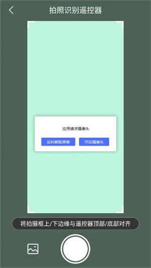 2、如选择“拍照识别遥控器”,点击进入授权相机权限后进行扫描匹配即可。