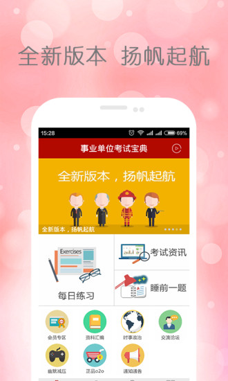 1、事业单位考试宝典界面简洁清晰,操作简便易懂,考生能迅速上手,轻松投入备考。