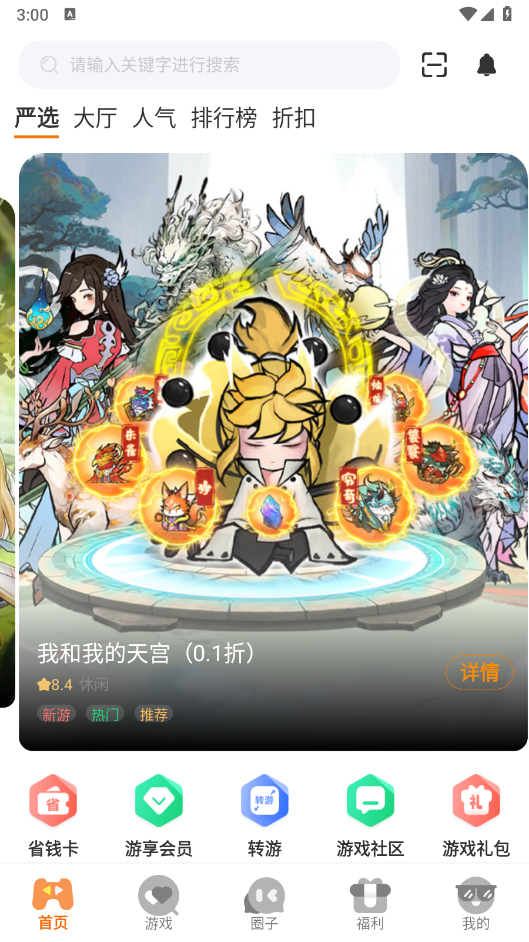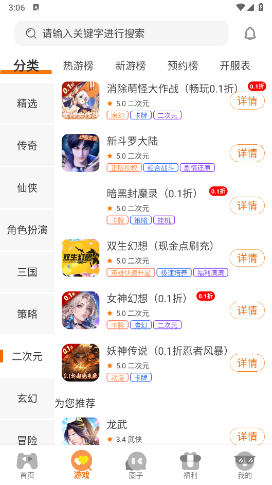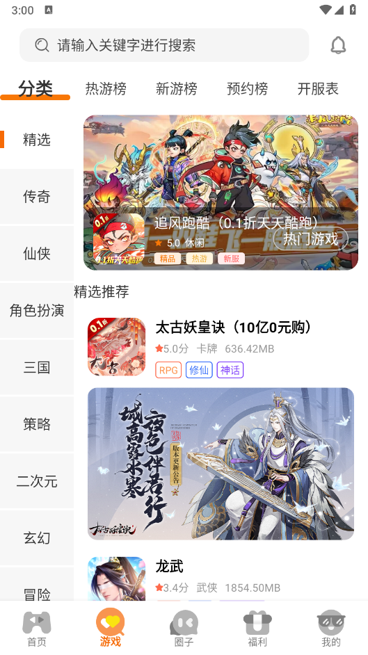 2、打开软件后,“首页”和“游戏”板块里汇聚了海量游戏资源,玄幻、传奇、三国等各类题材应有尽有。