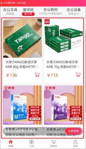 服务范围涵盖办公用品、数码设备、家居产品、文具用品、日用品、食品生鲜等核心品类,借助系统分类与智能搜索功能,满足多样化的消费需求。