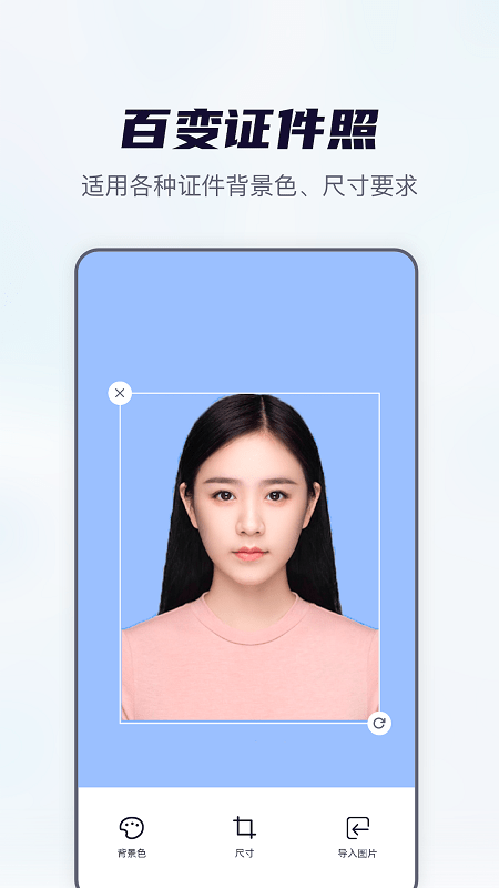 百变证件照,适配各类证件的背景色与尺寸要求,用户可直接使用。