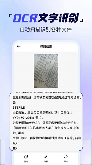 可对识别内容进行编辑,扫描内容支持多种格式导出。