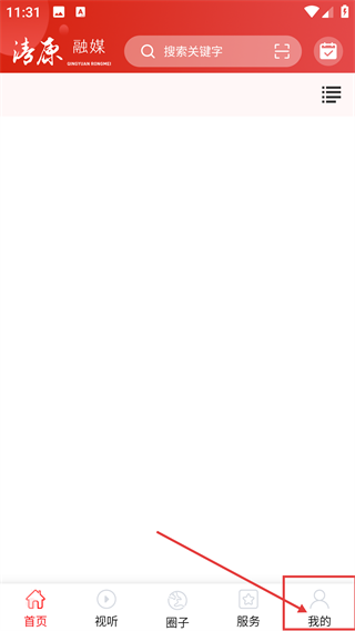 1、进入【清源融媒】首页后,可使用顶部搜索功能,点击底部【我的】按钮进入个人中心页面。