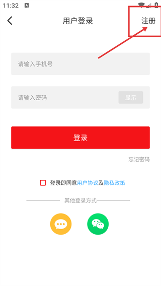 3、在用户登录页面,点击右上角【注册】按钮,切换至账号注册页面,准备完成注册操作。