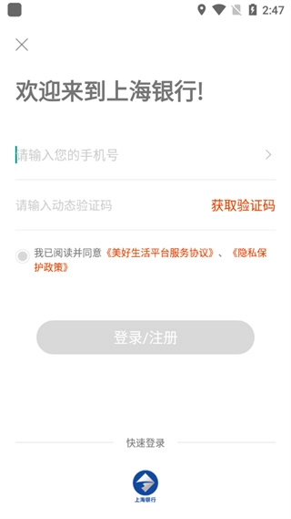 登陆账号,也可以使用上海银行的账号快速登陆;