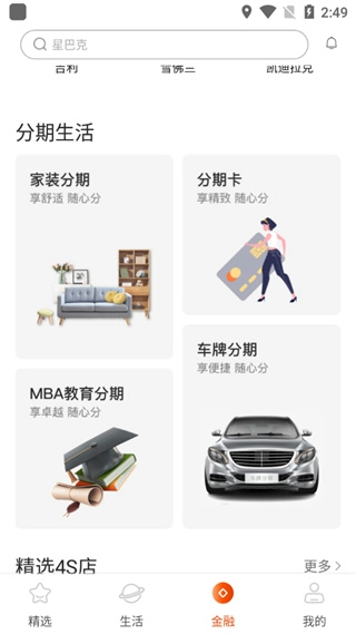 金融界面则是可以查看一些汽车或者分期购物啥的。