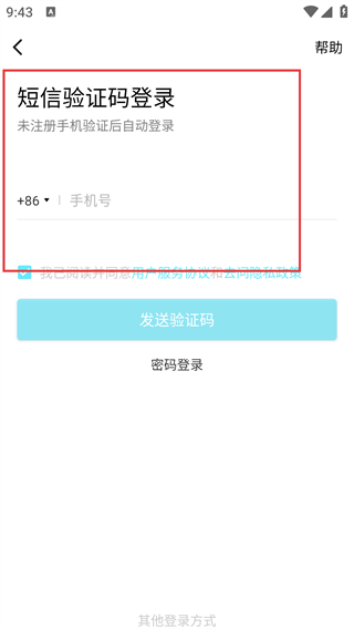 2、进入【短信验证码登录】页面,输入【手机号】,勾选相关协议后点击【发送验证码】,完成验证环节。