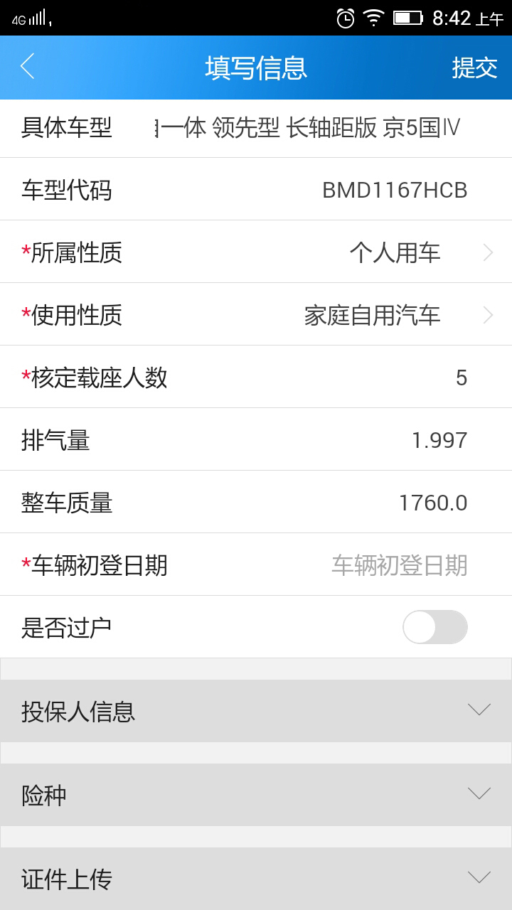安装e车利后,先完成注册登录操作,再把个人信息和车辆信息补充完整。
