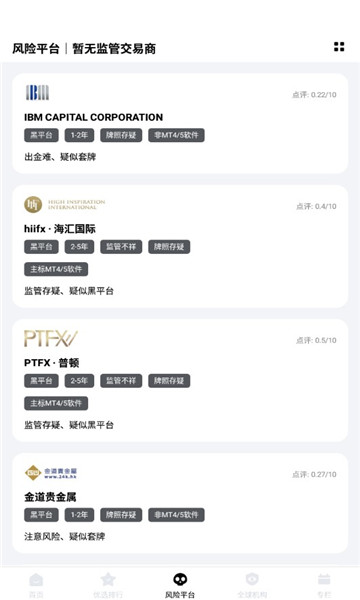 针对平台内的各类交易商,系统会智能地为用户分析各类行业价值信息;若遇质量欠佳的企业,则会将其标记为黑平台并进行展示,同时提醒用户注意规避。