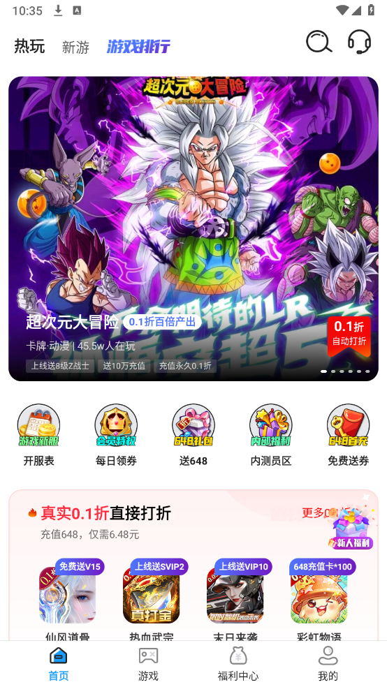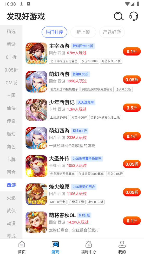 2、在首页以及游戏页面,提供了超级多优质的游戏资源,无论是0.1折、0.05折还是传奇射击的都有。