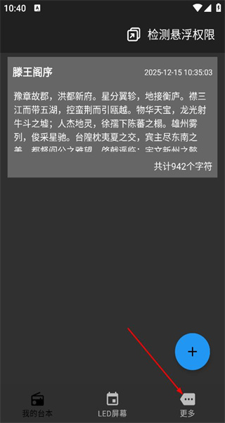 1、打开软件后,进入展示页,看到滕王阁序内容,点击更多按钮,进入个人中心页面。