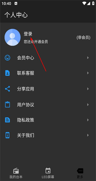 2、进入个人中心页,看到登录等功能选项,点击登录选项,进入用户登录页面。