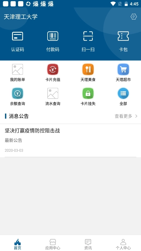 天理校园卡是一款专门为天津理工大学学子开发的校园服务应用,采用全新设计的界面,操作简单易懂,致力于为全体师生带来便捷且高效的校园生活体验。