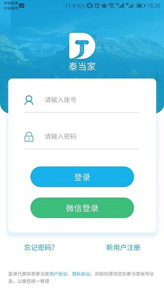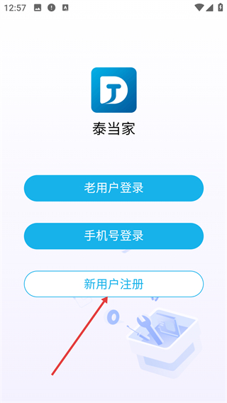 1、在“泰当家”登录页点击【新用户注册】按钮,进入身份选择界面,需选择对应身份完成注册。