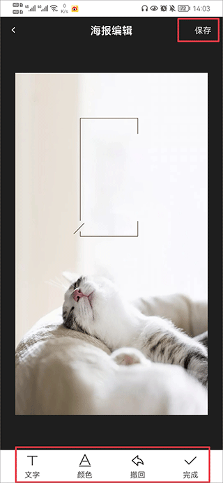 3、最后利用下方的编辑工具完成海报制作,点击保存后,海报就会保存至相册。