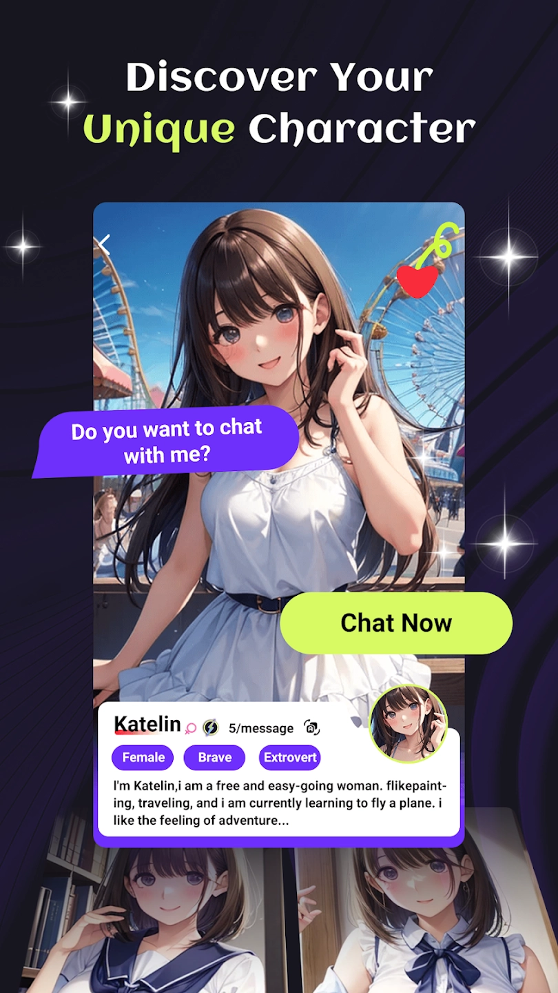 rosie正版是一款主打二次元动漫风格的AI虚拟恋爱应用,平台上有丰富多样的特色AI人设可供选择。在开启聊天前,你能查看每个角色的详细设定,像温柔体贴的大姐姐、活力满满的勇敢学妹,或是带有病娇腹黑属性的年上姐姐等。你可以邂逅不同性格的AI角色,与她们畅聊互动,享受完全自由的交流体验,沉浸式感受轻松有趣的对话氛围。在这里聊天互动无需顾虑,感兴趣的话不妨来亲自体验一番。