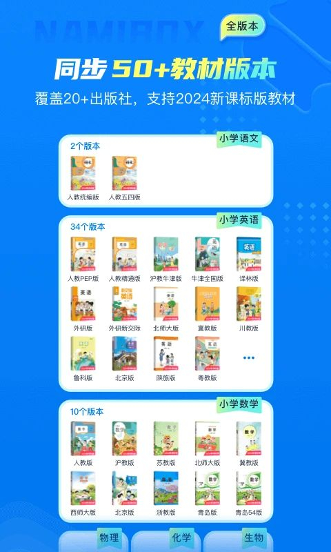 3、根据学习阶段选择对应年级和学期信息,系统将自动匹配相应教材内容。