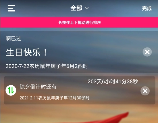 倒计时功能:可用于记录各类重要日子,包括节日、生日、恋爱纪念日、各类纪念时刻、高考倒计时以及重要日程安排等。