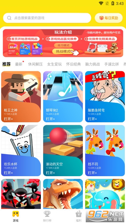 挑战丰富多样的游戏关卡,趣味体验持续升级,达成目标就能赢取礼品,轻松开启各类游戏挑战之旅。