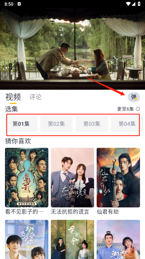 4、找到心仪的影视剧集后,选择对应的集数就能进入正片,并且可以进行弹幕相关设置。