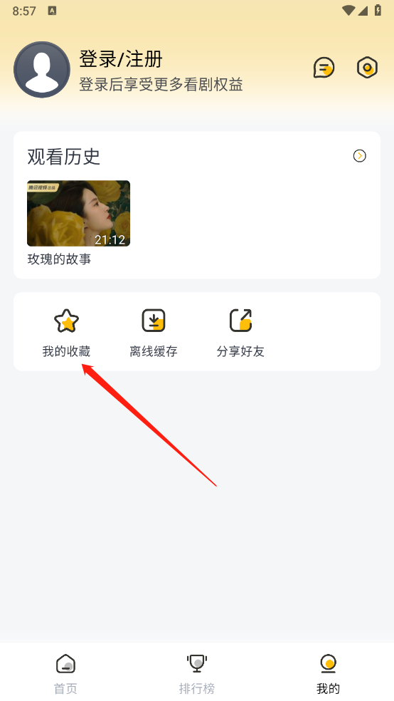 3、回到首页后,点击“我的”选项,接着点击“我的收藏”,就能查看已收藏的内容了。