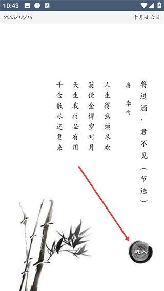 1、进入诗词展示页面后,点击【进入】按钮,即可跳转至【唐诗三百首】的功能选择界面,在这里能够挑选各类与诗词相关的功能。