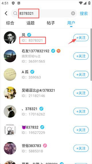 5、这样就可以轻易找到朋友的账号了,点击“关注”即可。
