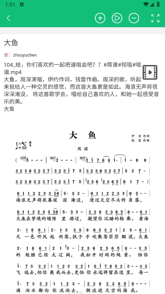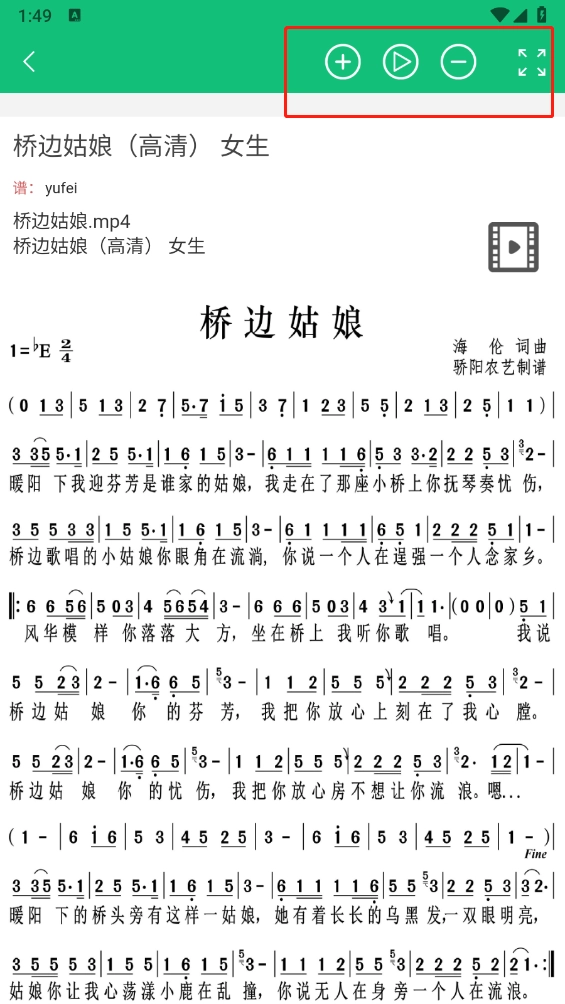 4、点击需要的简谱资源,点击右上角的“播放”按钮就可以使用了,还可以调整播放速度哦。