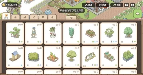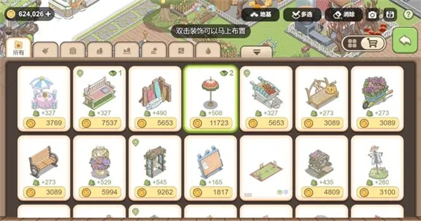 点击“多选”按钮后,就能选中多个装饰进行集体移动,甚至地砖也能一同转移,这种方式很适合进行范围布局。而旁边的“消除”按钮,则可以把多个装饰合并起来一次性消除,操作起来十分便利。