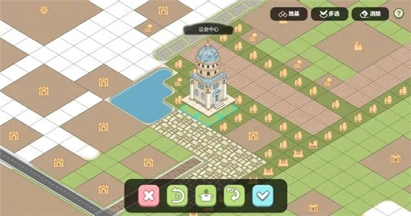 在造景模式下,点击右上角的“地基”按钮,就能将所有装饰切换为平面图显示,这样可以避免装饰之间相互遮挡,方便玩家进行摆放操作。