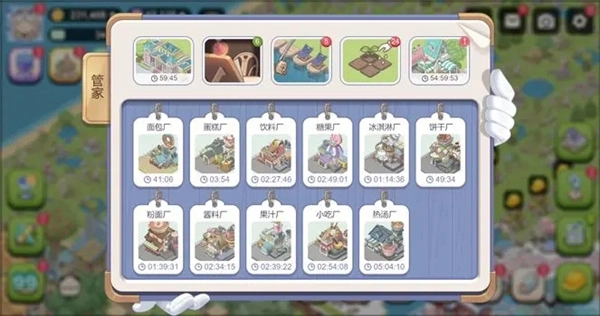 当等级树升至9级时,管家功能将随之解锁。进入管家界面,可看到工厂、鱼塘、市场、家具制作等功能入口,能直观了解当前工厂的生产运营状况、市政收益详情、家具制作剩余时长,以及鱼塘和农田的收成进度等信息。此外,还能一键完成农作物收获与市政收益领取,助力城主高效统筹各类生产模块。
