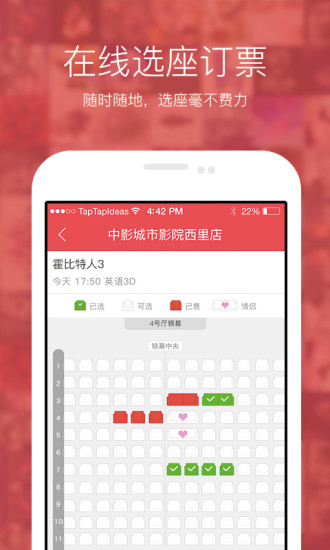 1.全国电影院"在线选座"2-6折,看电影,想坐哪里点哪里, so easy!