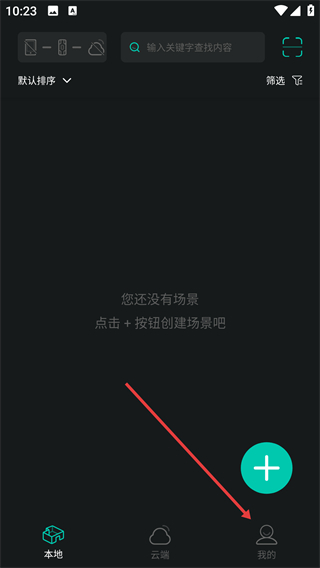 1、在【本地】页面点击右下角的+按钮即可创建场景,此外还能借助顶部的搜索框来查找内容,并且可以对结果进行排序调整或筛选操作。