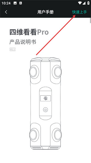 3、进入【用户手册】页面,可查阅【四维看看Pro】的产品说明书,点击右上角的【快速上手】按钮,即可获取简易操作指南。