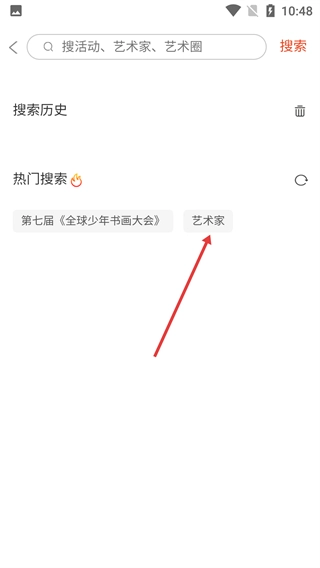 在搜索界面,你可以选择【热门搜索】下的【艺术家】标签,这样能快速进入对应的搜索分类,从而节省输入所需的时间。