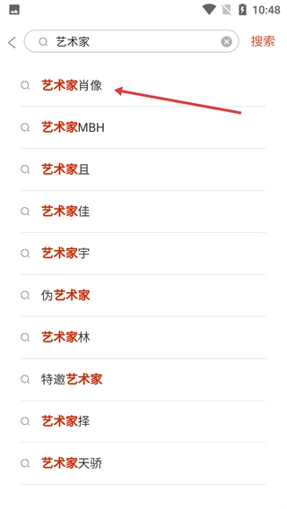 3、在搜索框中输入【艺术家】后,系统会呈现相关的联想结果,点击其中的【艺术家肖像】选项,就能精准找到对应的内容。