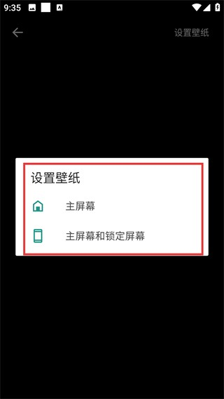 4、最后会弹出设置选项,您可以自由的将该壁纸设置到主界面或者锁屏界面。