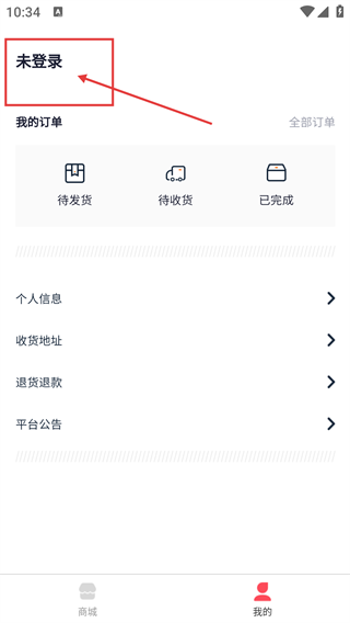 3、当处于【未登录】状态时,【我的订单】等功能暂时无法使用,需要完成登录操作才能解锁相关权限。