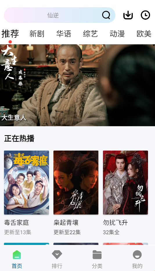 1、下载安装软件并打开,进入软件即可看到热播推荐