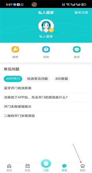 打开软件后,进入管家页面,查看服务选项,接着点击底部的“我的”,进入个人中心页面。